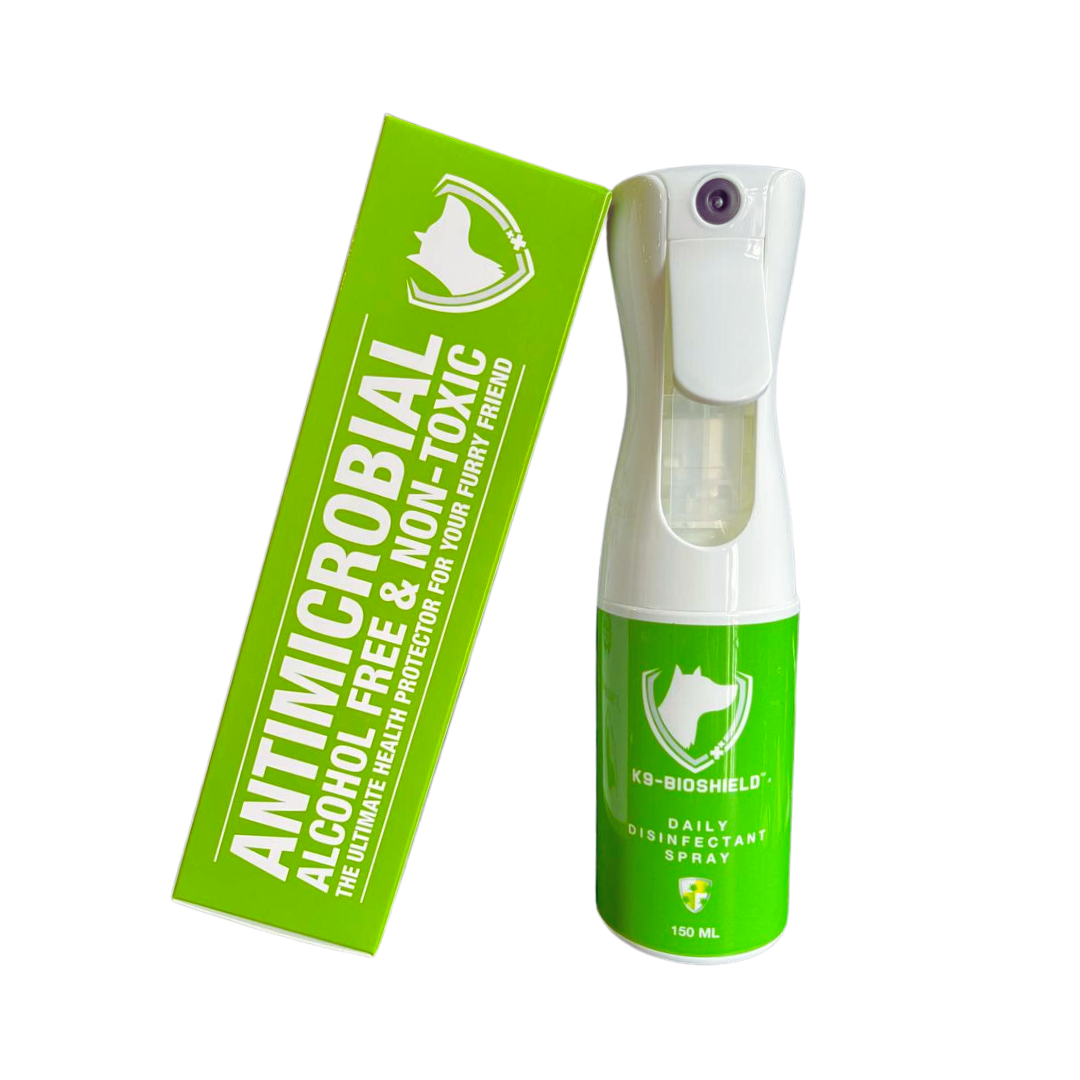 Not to worry, the K9-Bioshield Daily Disinfectant Spray has got you covered. Just like our daily hand sanitisers that keep bacteria at bay, the Daily Disinfectant Spray does the same thing for your pet.